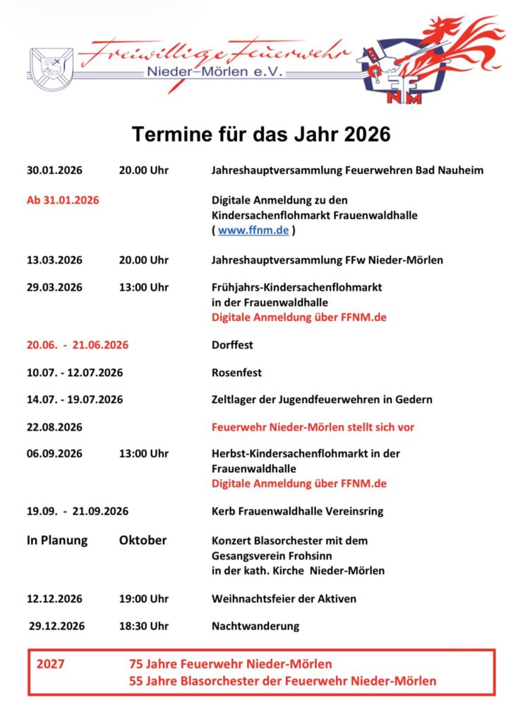 Es freut sich auf Ihren Besuch der Verein der Feuerwehr Nieder-Mörlen